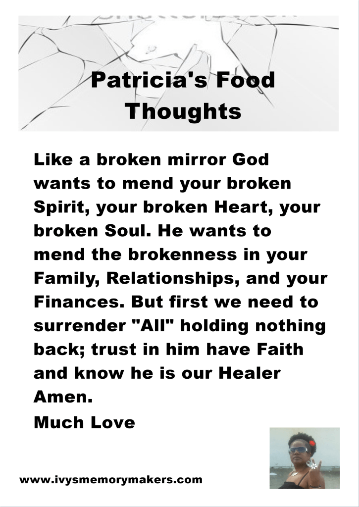 I know we can’t repair a broken mirror, it usually toss away. You can still see the image in the pieces. That is how we feel when then go wrong, we feel shatter. We can’t be tossed in the trash like the mirror. We have to try and pick up the pieces and keep going.