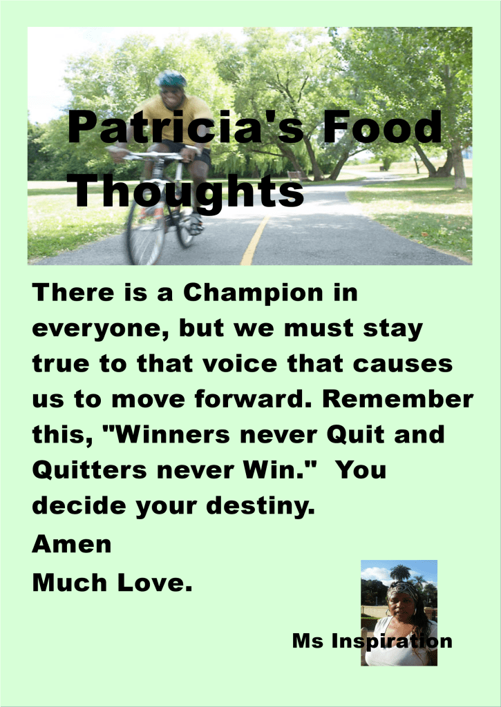I know people say this all the time “Winners never Quit, and Quitter never win”. We all want to be on the winning side, but can we make it our destiny? I think we all have a desire to win, just don’t set yourself up fail by quitting.